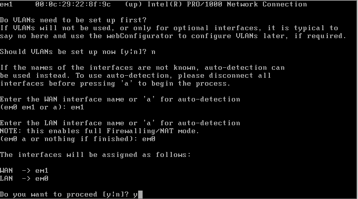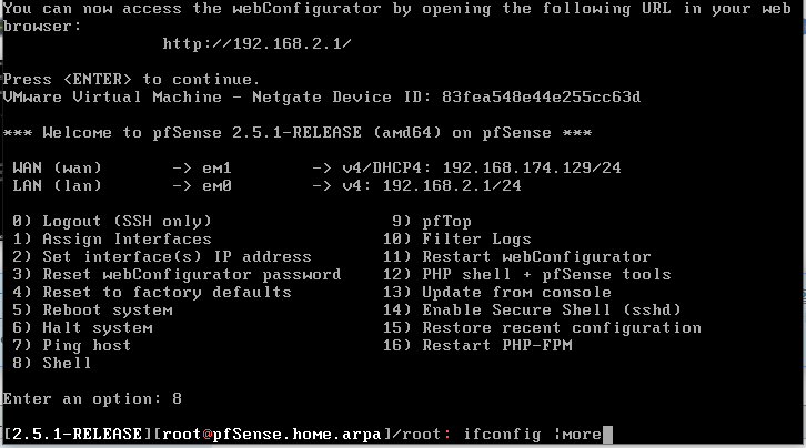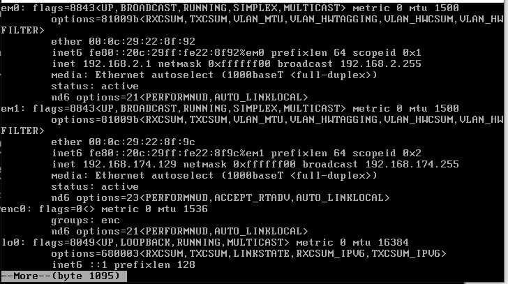 완료후 em1,em0에 ip가 할당된게 있을것이다.