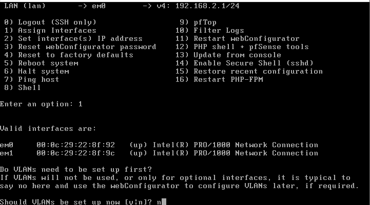 설치한 pfSense의 내부와 외부 네트워크를 설정한다.