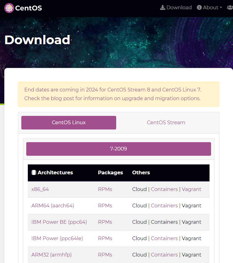 버전이 7버전만 있는거 같아서 뭐지하고 옆에 Centos stream이란게 있어서 뭐가 달라졌나보다 하고 생각했다.