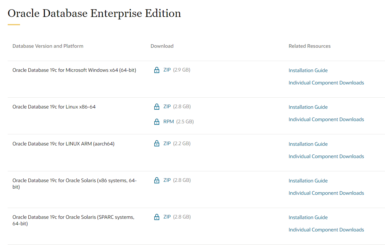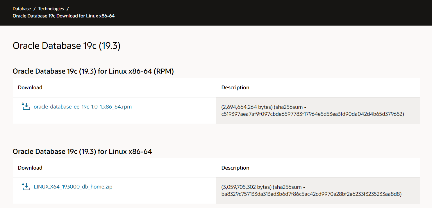 먼저 google에서 oracle 19c download 를 하면 아래 두개가 나옵니다.
