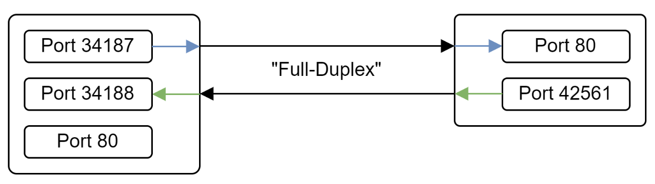 위 그림처럼 외부로 임시 포트로 나간뒤 호스트에서 80포트로 받고 임시포트로 보내고 클라이언트에서는 임시프트로 받는다.