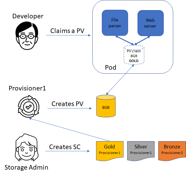 기존의 방식으로는 프로비저너(외부스토리지나 내부스토리지)에 맞는 pv를 하나하나 생성한후 pvc와 바인딩 해야했다.