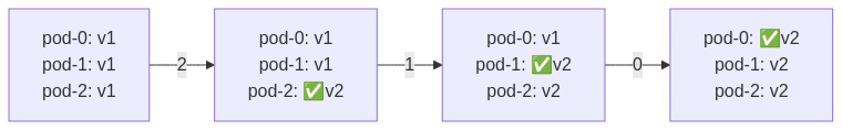역순(2→1→0)으로 업데이트: 보통 pod-0이 Primary/Master이기 때문