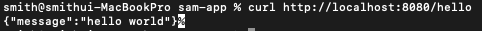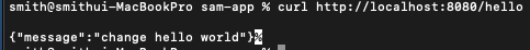 sam 로컬 프로세스를 다시 시작할 필요가 없습니다. 브라우저 탭을 새로 고치거나 CURL 명령을 다시 트리거하여 엔드포인트에 반영된 변경 사항을 확인하십시오.