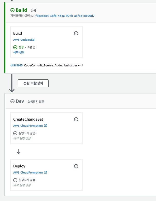 파이프라인을 생성하려면 최소 2단계가 필요하기 때문에 아직 cdk 배포를 수행하지 마십시오.