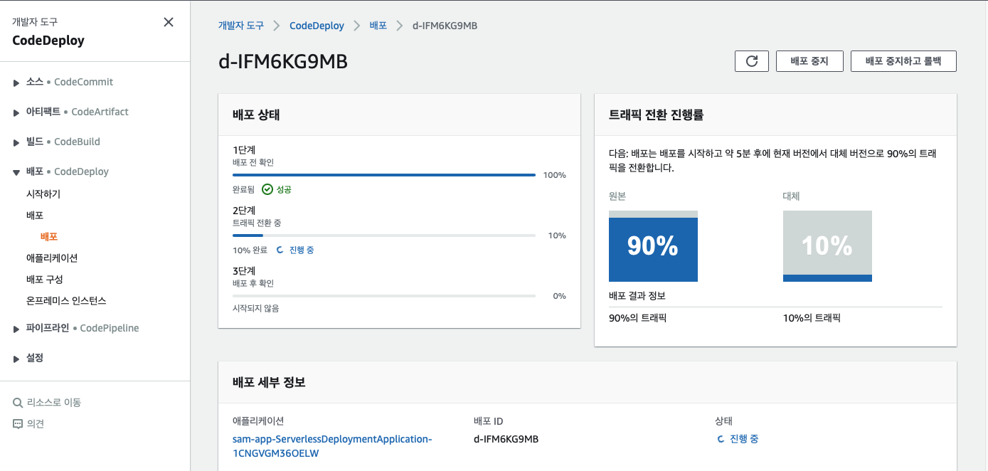 콘솔 CodeDeploy에서 해당 과정을 상세하기 볼수 있습니다.