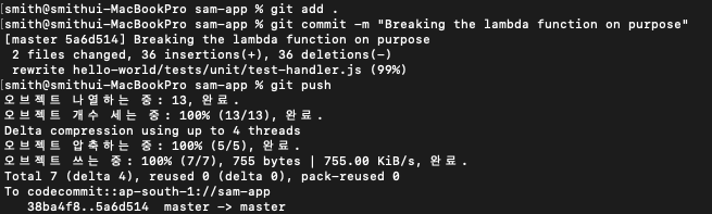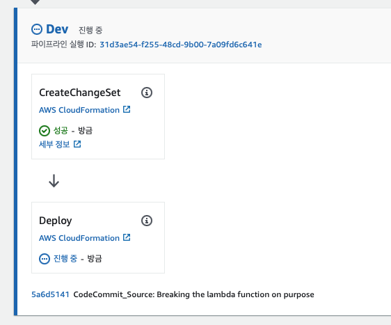 배포 중에 CanaryErrorsAlarm이 트리거되도록 의도적으로 Lambda 함수를 중단할 수 있습니다.