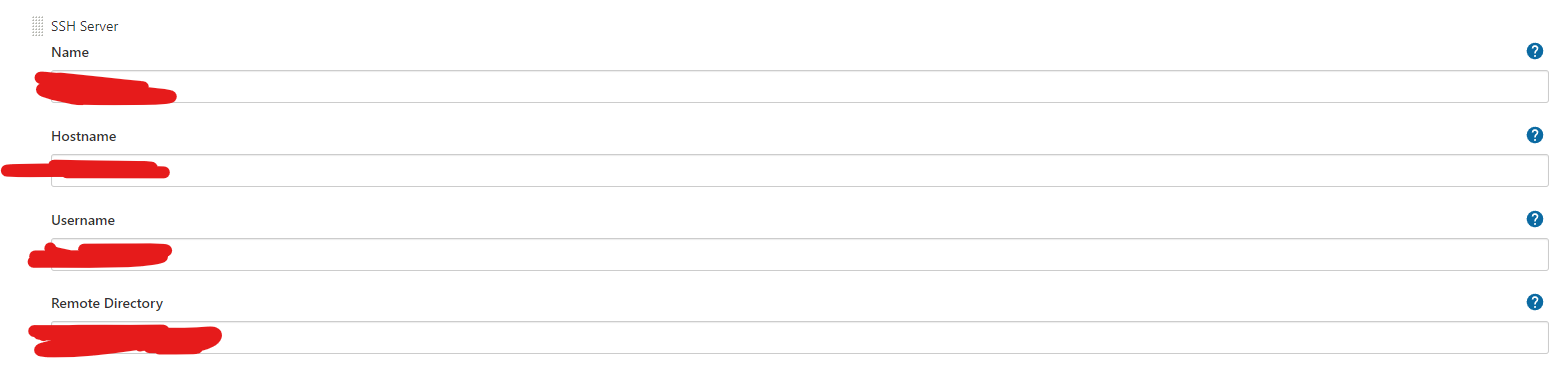 배포할 서버의 정보를 입력합니다. 전에 publish over ssh에서 입력한 서버중 하나를 Name 카테고리에서 선택후