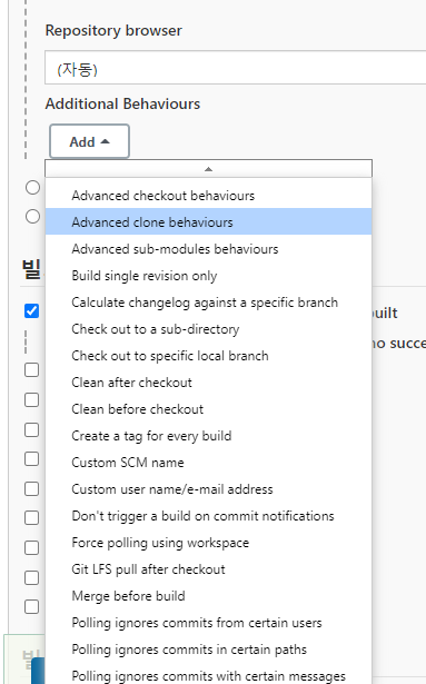 bitbucket을 쓸거라 git을 선택해서 소스코드를 bitbucket에서 가져옵니다.