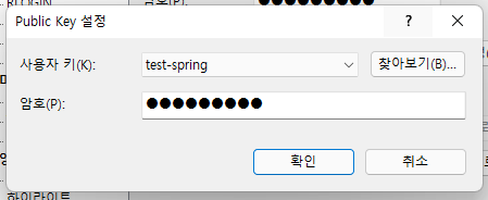 등록한 암호를 public key 설정에 입력하고 접속하면 됩니다.