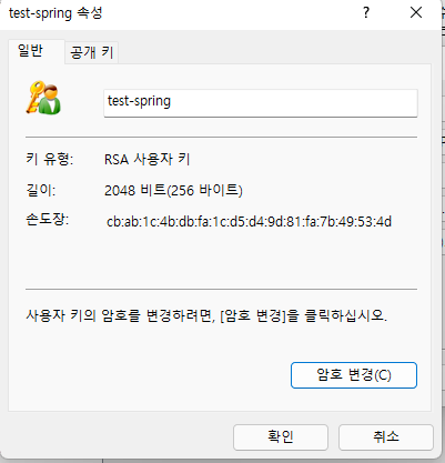 그리고 등록정보를 눌러 pem키의 비밀번호를 입력해야합니다.