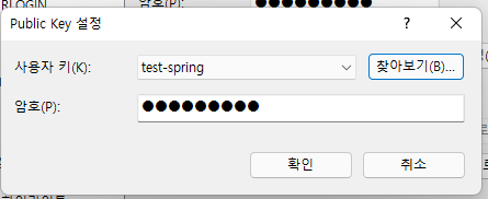 등록한 암호를 public key 설정에 입력하고 접속하면 됩니다.