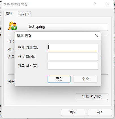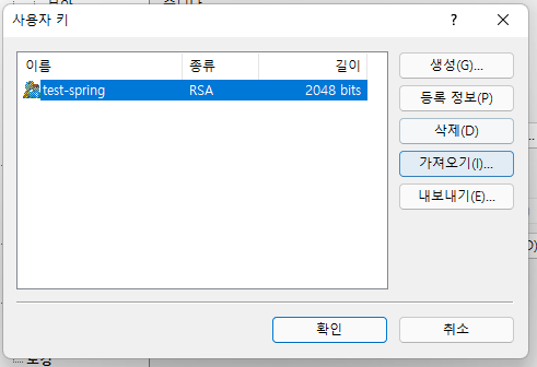 그리고 등록정보를 눌러 pem키의 비밀번호를 입력해야합니다.