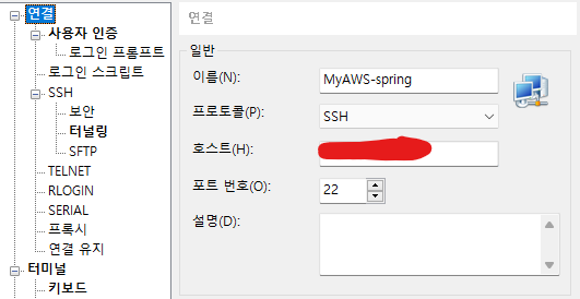 처음 연결하면 호스트에 ec2의 public IP를 입력한다