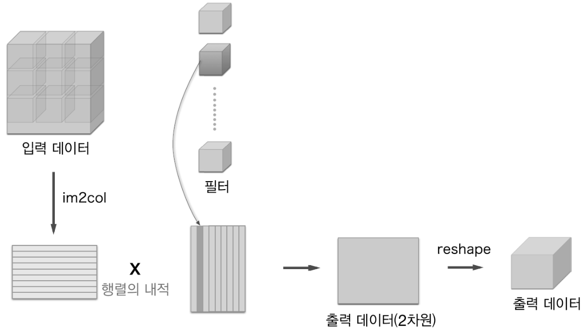 im2col은 입력데이터를 필터링(가중치 계산) 하기 좋게 전개하는 (펼치는) 함수이다.