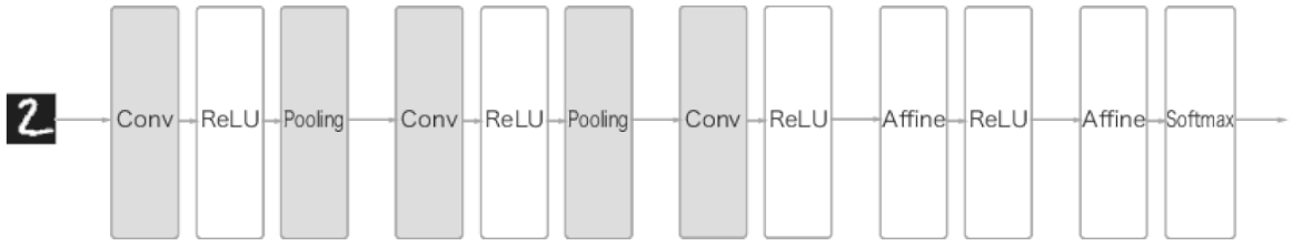 즉, 'Conv - ReLU - (Pooling)' 으로 연결된다. (마지막은 Affine - Softmax)