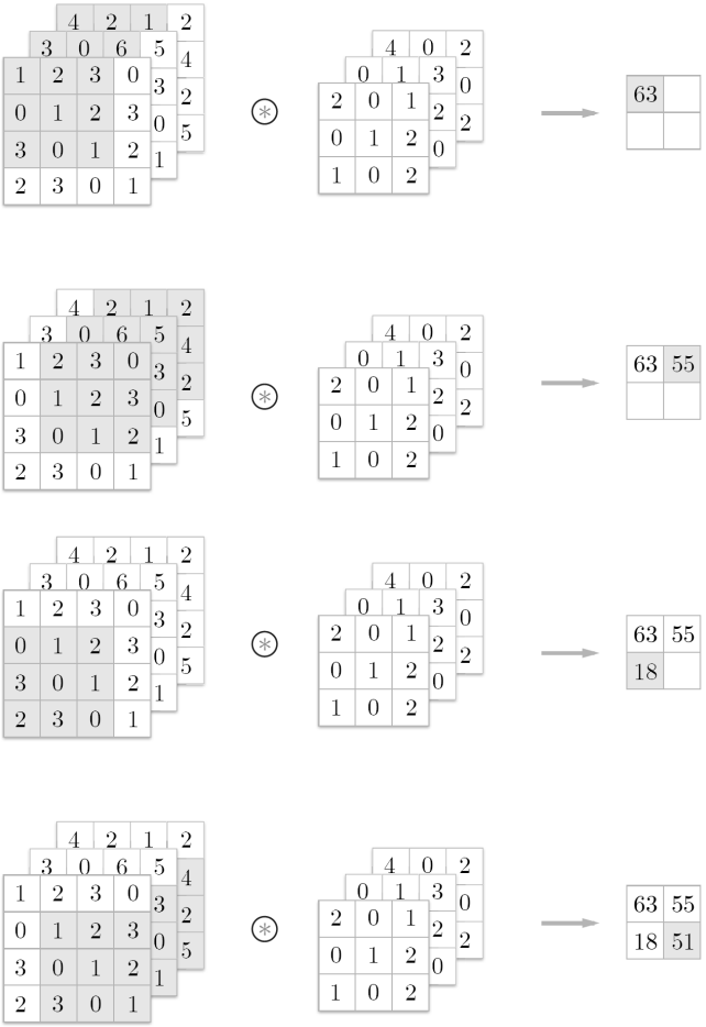 회색부분과 필터와의 곱한후 총합을 구한다. 이것을 단일 곱셈 누산(fused multiply-add, FMA)이라 한다.
