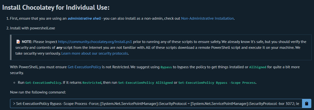 chocolatey에 대해 더 알고싶으신분은 홈페이지 docs에 가셔서 보시면 될것같네요