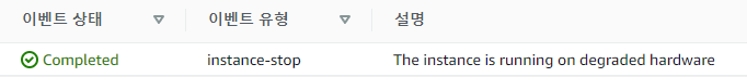 내용을 요약하자면 해당 ec2 인스턴스에 결함이 생겨 폐기 해야한다고한다.