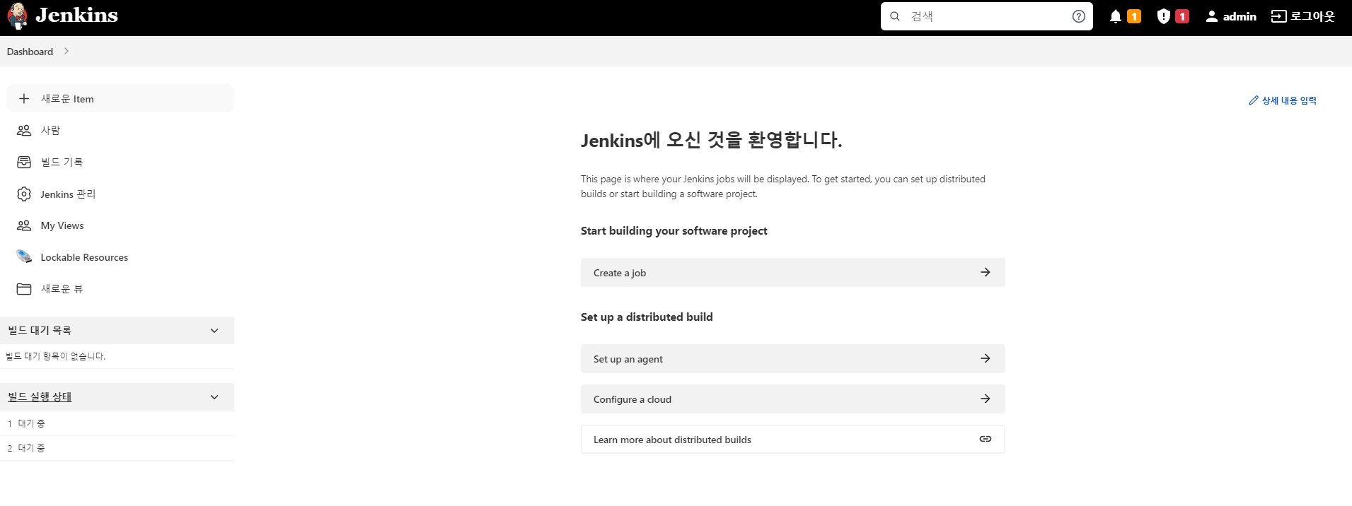 입력했던 계정으로 로그인하시면 젠킨스가 정상적으로 동작하는것을 확인하실수 있습니다.