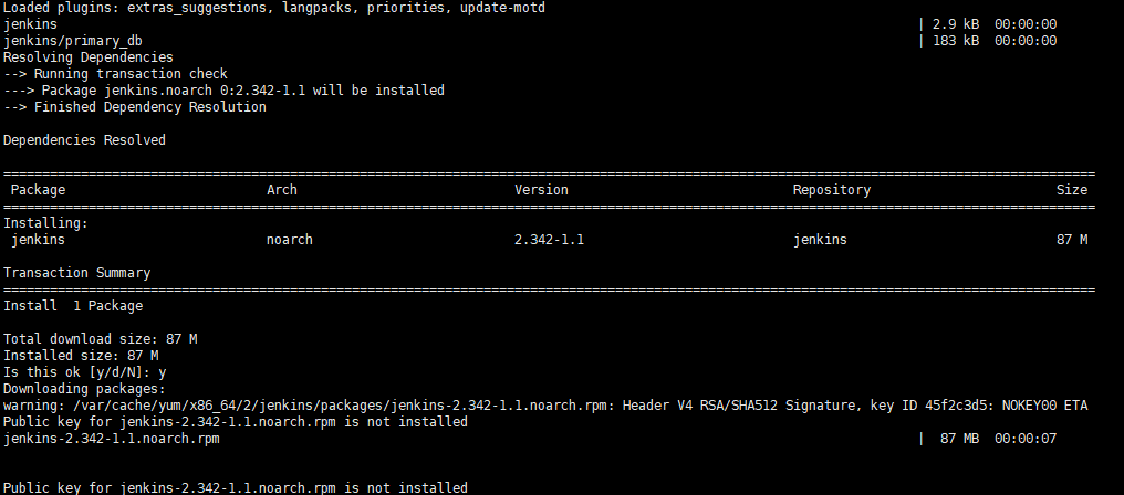 (Public key for jenkins-2.342-1.1.noarch.rpm is not installed)