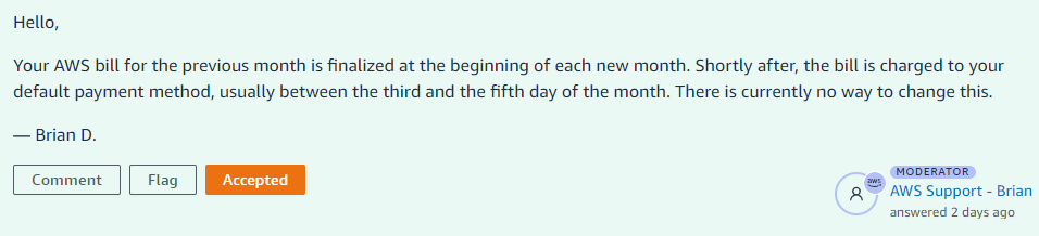 카드하나에 여러 계정은 가능하나 결제일 변경은 제가 콘솔에서 바꿀수 있는 방법은 없어 보였습니다.