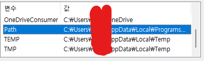 환경변수에서 Path 값에 위에 넣었던 값을 넣어줍니다.