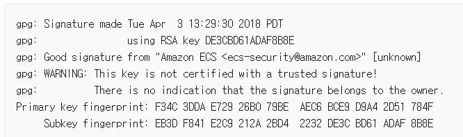 gpg --verify ecs-cli.asc 'C:\Program Files\Amazon\ECSCLI\ecs-cli.exe'
