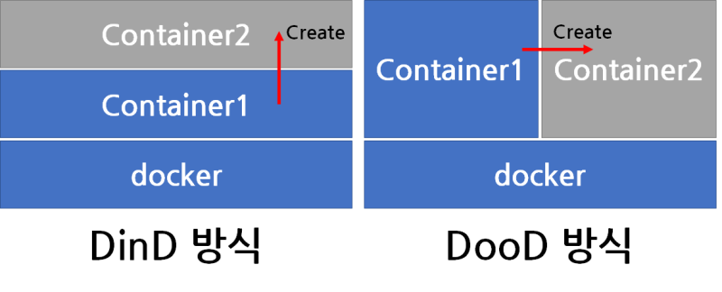 어떻게 보면 둘다 docker 안에서 docker 쓰는거지만