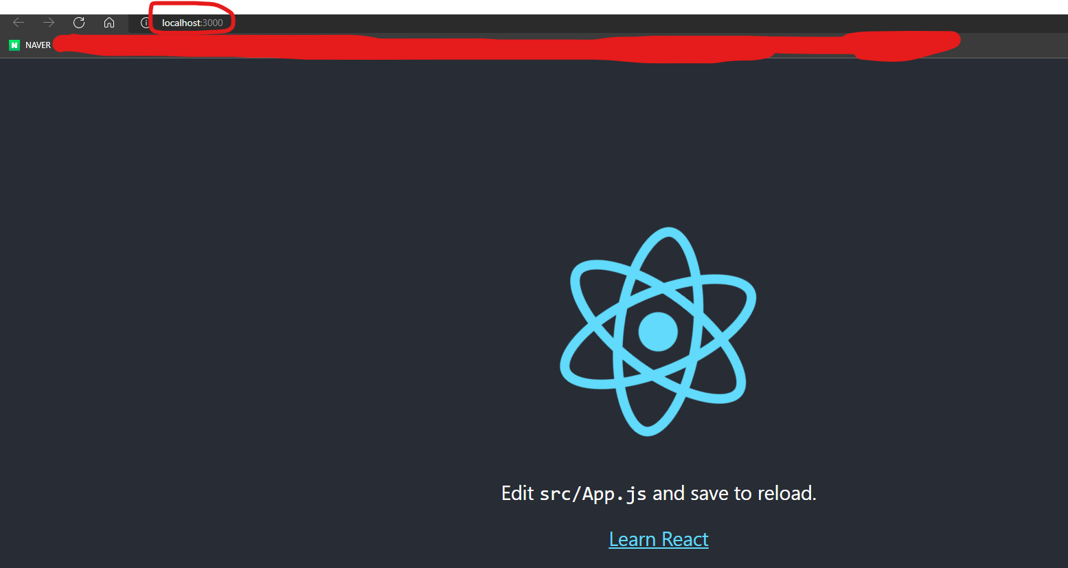 localhost:3000을 입력하면 리액트 홈페이지가 나옵니다.