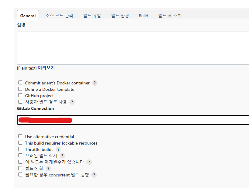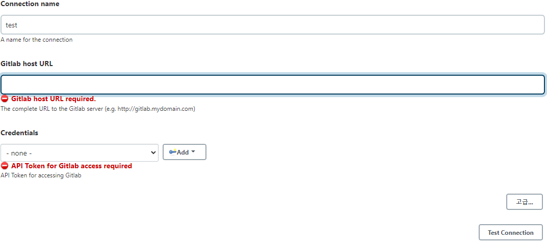 Gitlab connection 아래에 아무것도 없으니 만들어 줘야합니다.