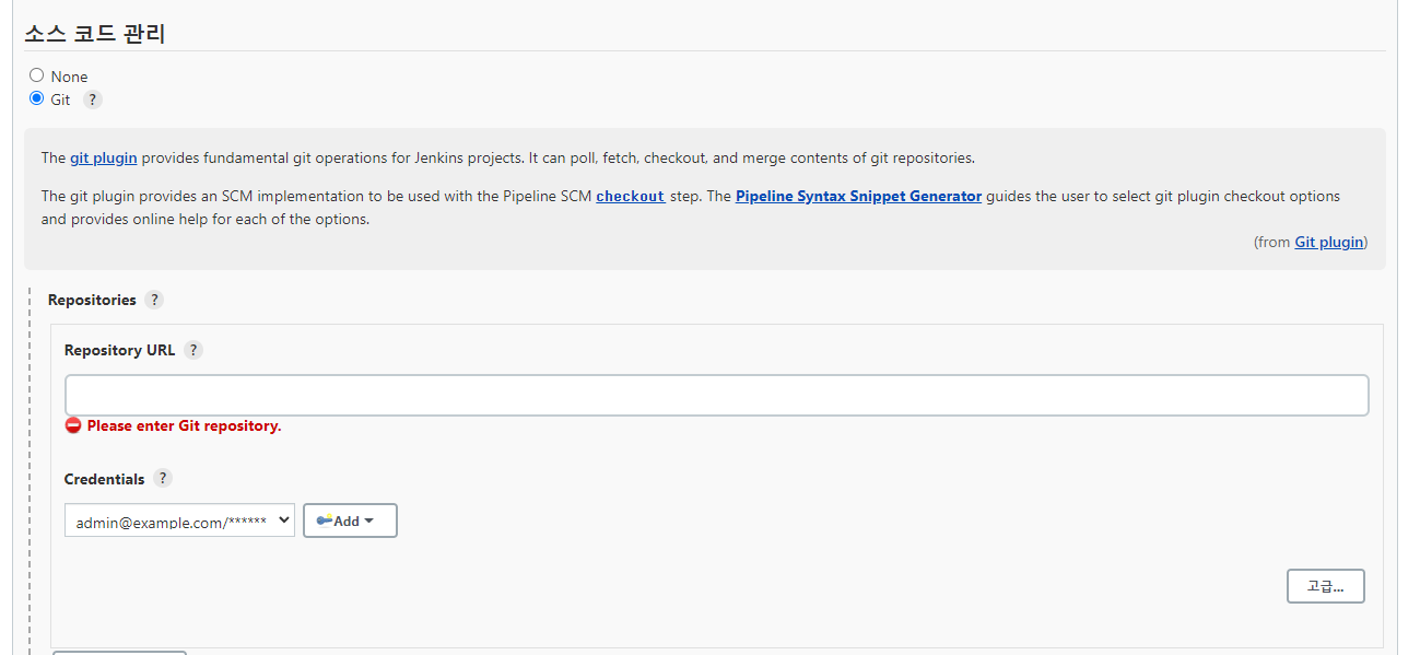 새로운 item으로 생성한 pipeline의 설정(구성)으로 들어갑니다.