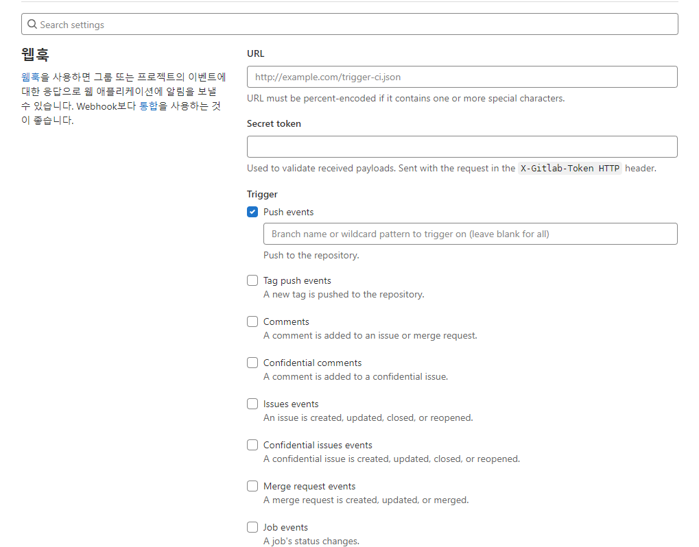 - 그리고 API token 입니다. gitlab에서 가져오는 값인데 아래를 마저 설명하고 이 값을 구하러 가겠습니다.