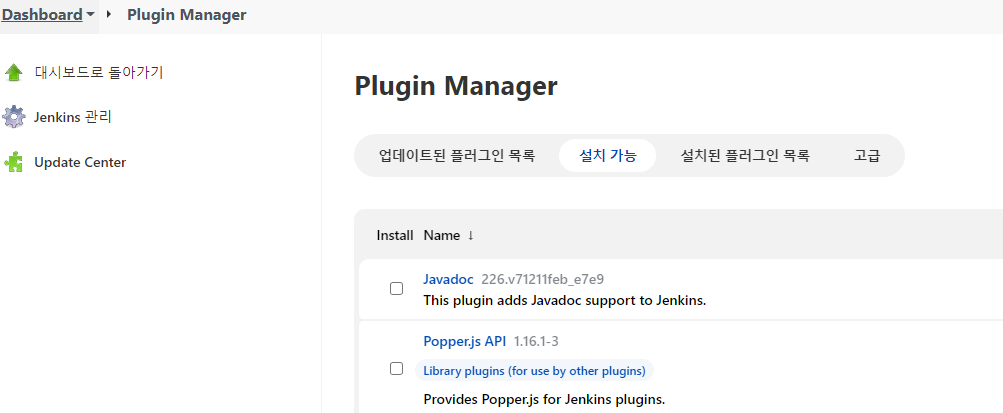 대시보드 - 젠킨스 관리 - 플러그인 매니저에 들어가셔서