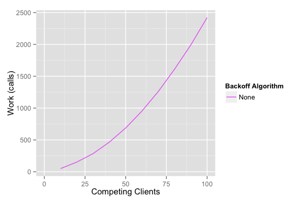 불행히도 그것이 전체 그림이 아닙니다. N 클라이언트가 경합하는 경우 시스템이 수행하는 총 작업량은 N2와 함께 증가합니다.