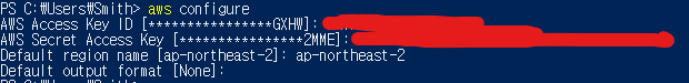 그것을 윈도우 powershell 에서 aws configure를 친다.