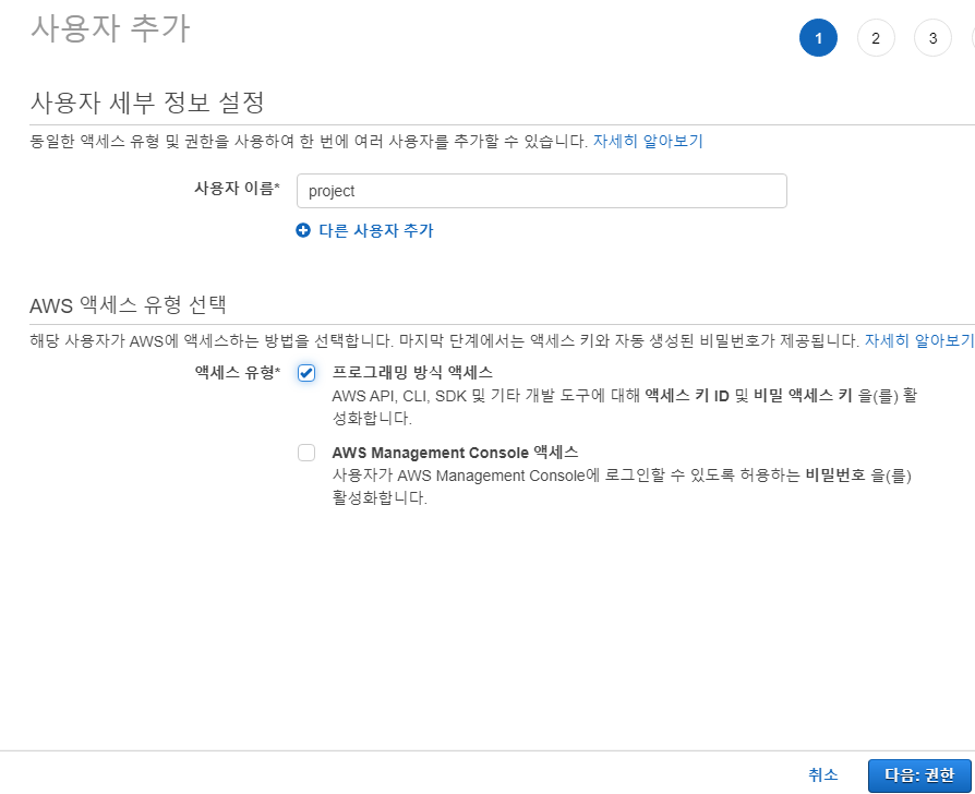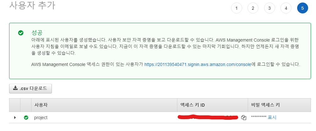IAM을 만들면 액세스키 id와 비밀 액세스 키가 나온다