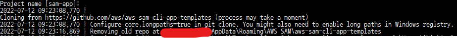 sam init 으로 예제 코드를 돌리려고 하는데 다음과 같은 에러가 발생했다.
