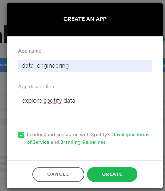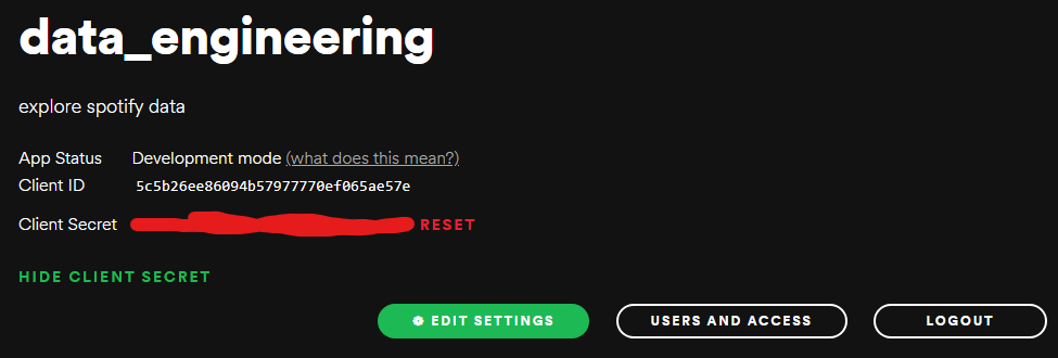 spotify 가입후 dashboard에들어가서 api id, secret key를 획득하자