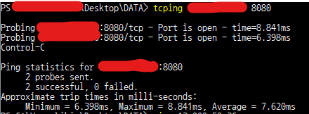 그래서 tcping이라는 것을 사용하여 특정 포트와의 통신이 되는 지 확인할수 있습니다.