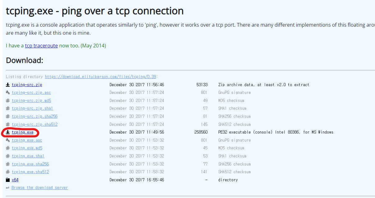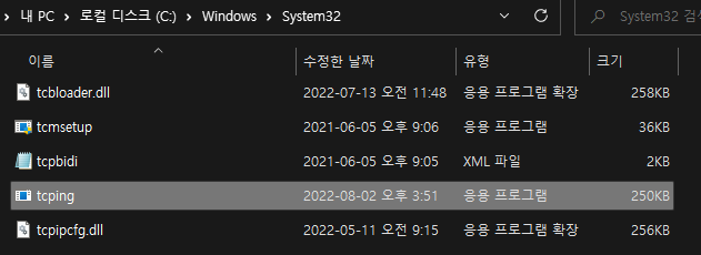 위 사이트에 들어가서 tcping.exe를 다운받은후