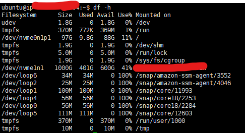 이제 df -h 로 용량이 잘 할당되엇는지 확인해보면 잘되어있는것을 확인하실수 있습니다.
