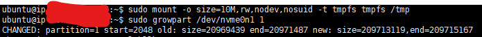 sudo growpart /dev/nvme0n1p1 1