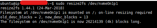 sudo resize2fs /dev/nvme0n1p1