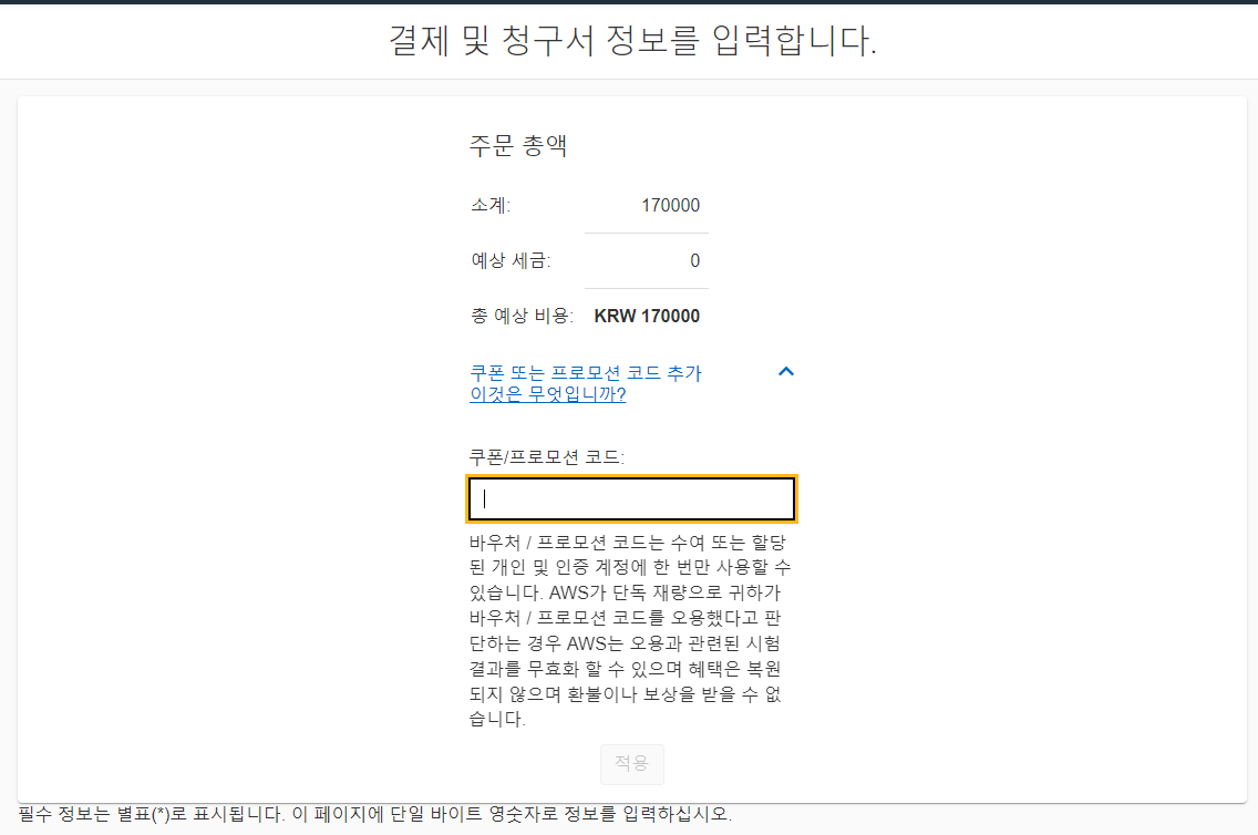 적용하시고 아래 정보를 입력하고 다음을 하면 결제가 되고 등록이됩니다.