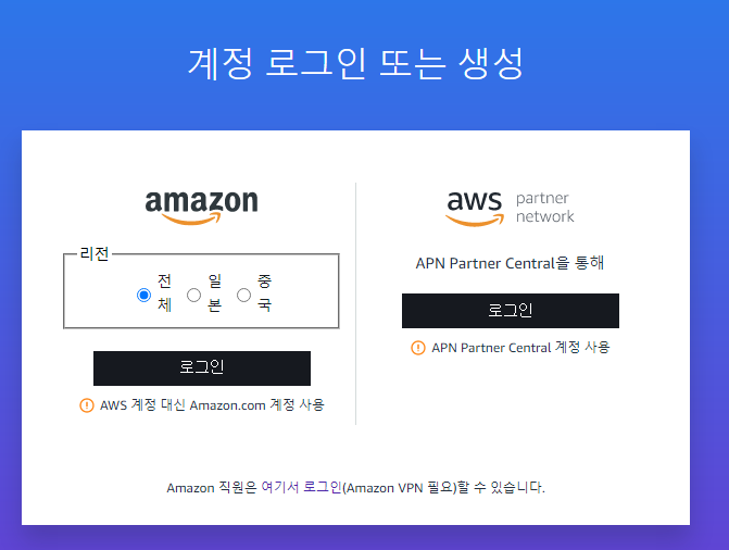 학생분이시거나 회사가 apn 이 아니라면 amazon 계정