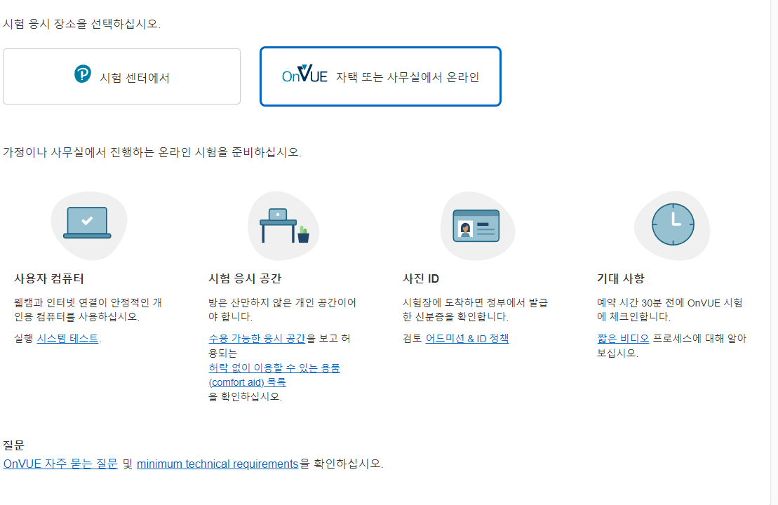 정책관련해서 나오는데 시험센터에 15분전에 도착해야하고 변경은 24시간 전에 해야한다는 등 나옵니다.
