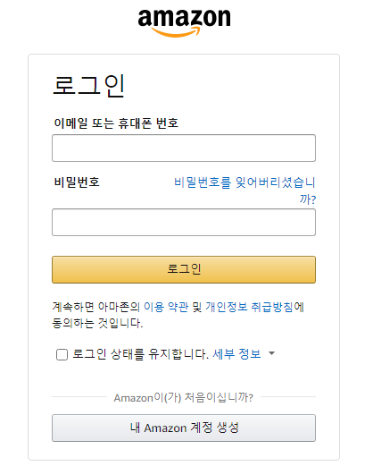 amazon 계정이 없다면 생성하시고(간단하여 생략하겠습니다.)