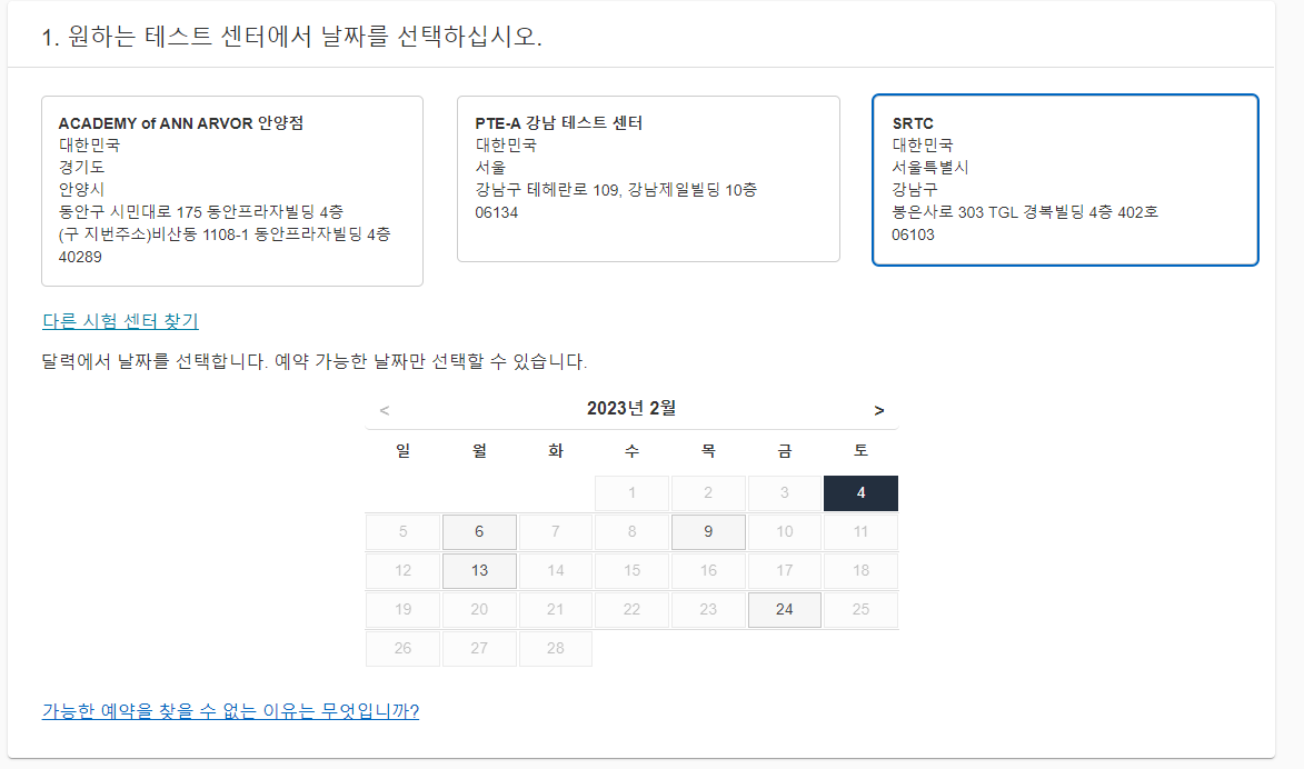 센터별로 클릭하고 날짜를 확인 할 수 있습니다.