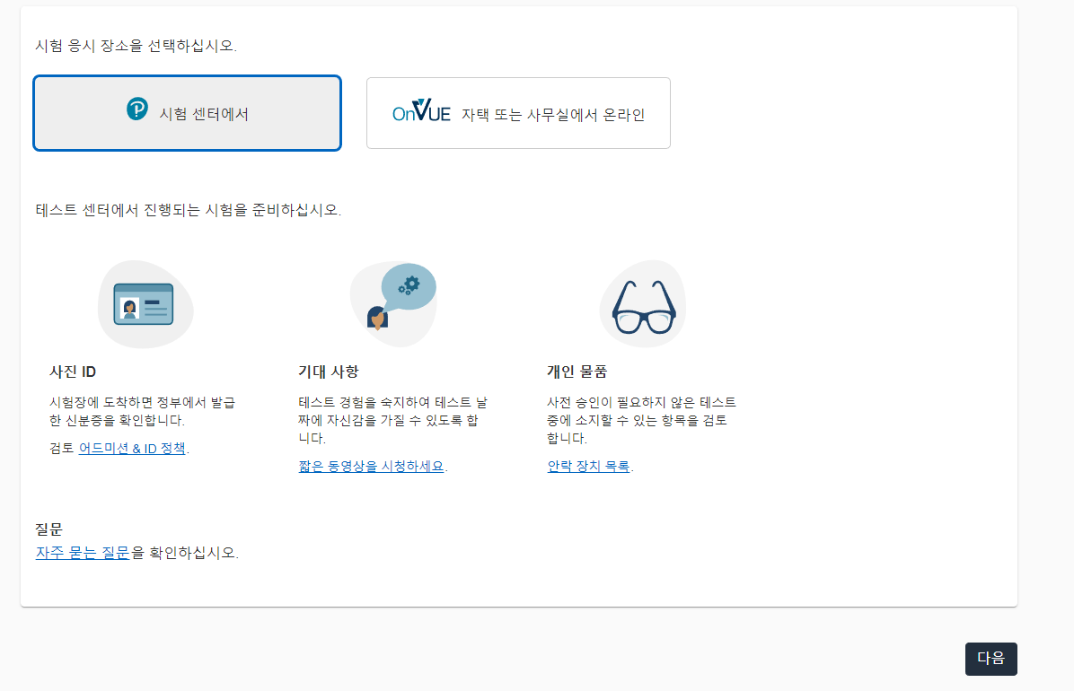 여기서 시험센터에서 볼지 온라인으로 볼지 선택하시면 됩니다.